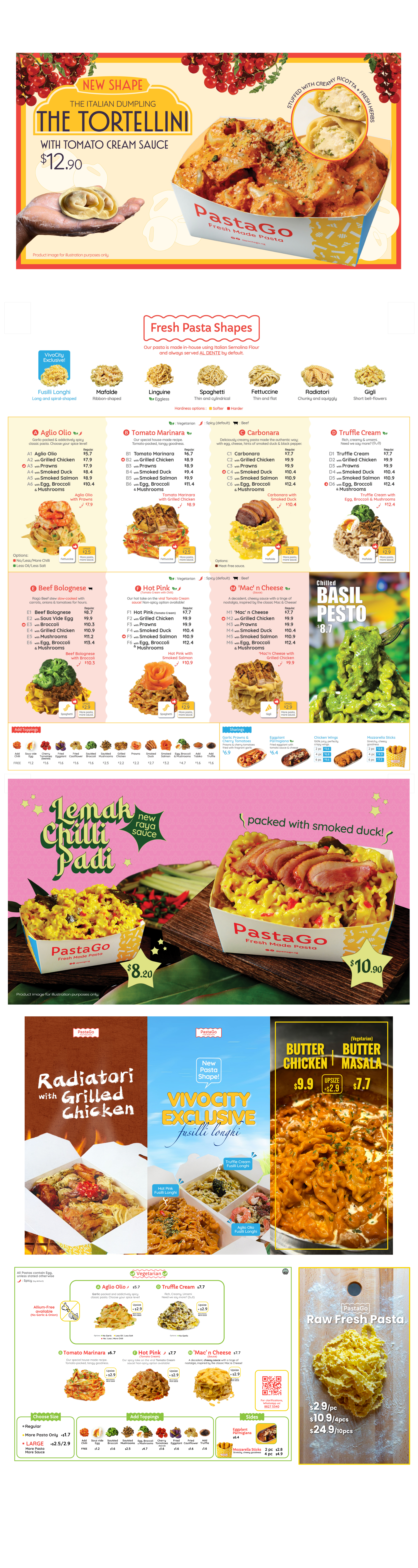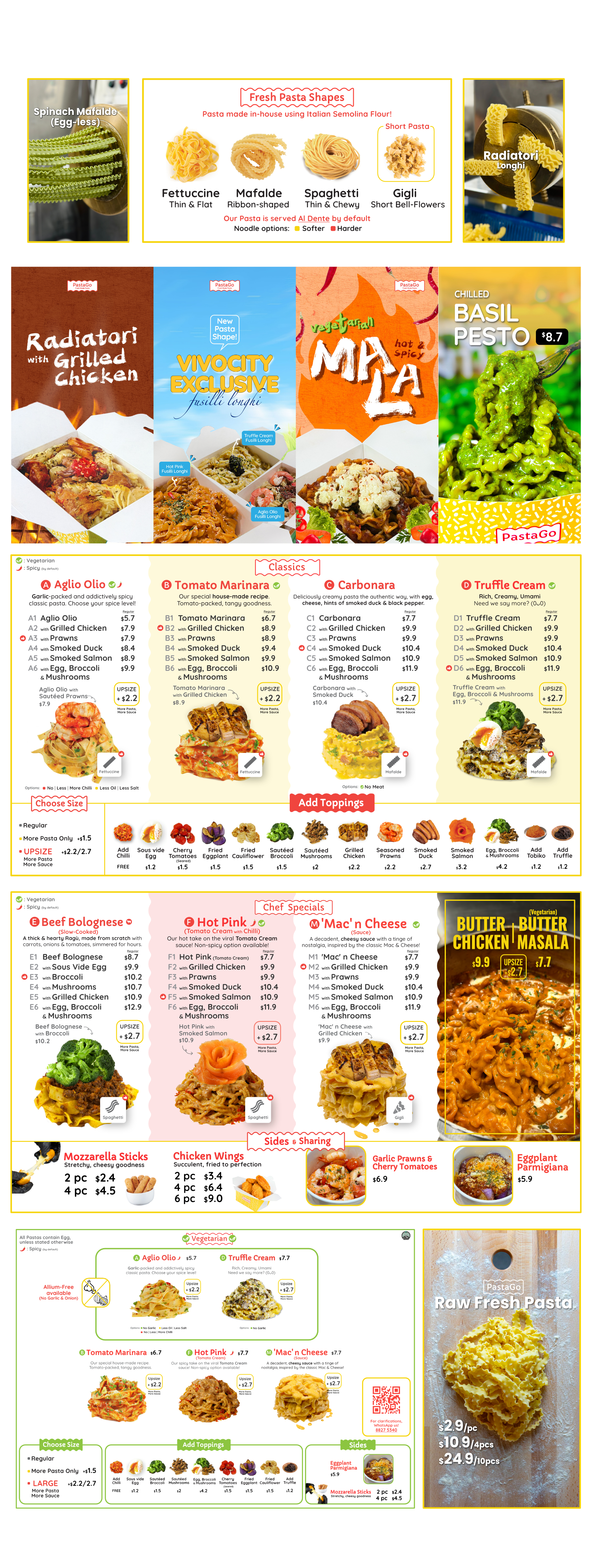 Upsize, add on various toppings, customise your pasta doneness & even elevate your dish with free add-ons of chilli padi and parmesan cheese!